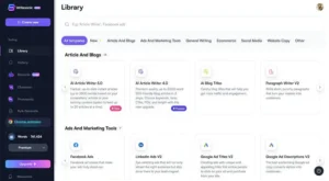 ثالثا باستخدام موقع : Writesonic هو مولد مقالات بالذكاء الاصطناعي سهل الاستخدام يساعدك على إنشاء وإعادة صياغة المقالات والورقة البحثية بسهولة من خلال بضع نقرات فقط. سواء كنت بحاجة إلى توليد محتوى إبداعي بسرعة أو تعديل المقالات الموجودة، فإن Writesonic هو مساعدك الأمثل.