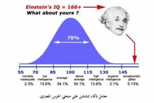 المنحى الجرسي للذكاء (غالبية الناس لديهم درجة ذكاء تتراوح بين 85 و 115)